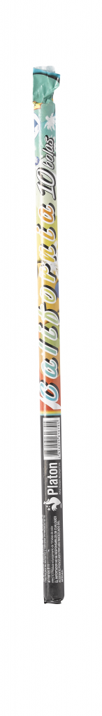 EFECTO: Candela que dispara bolas de color azul, amarillo con tronco de cracker de gran efecto y altura.
